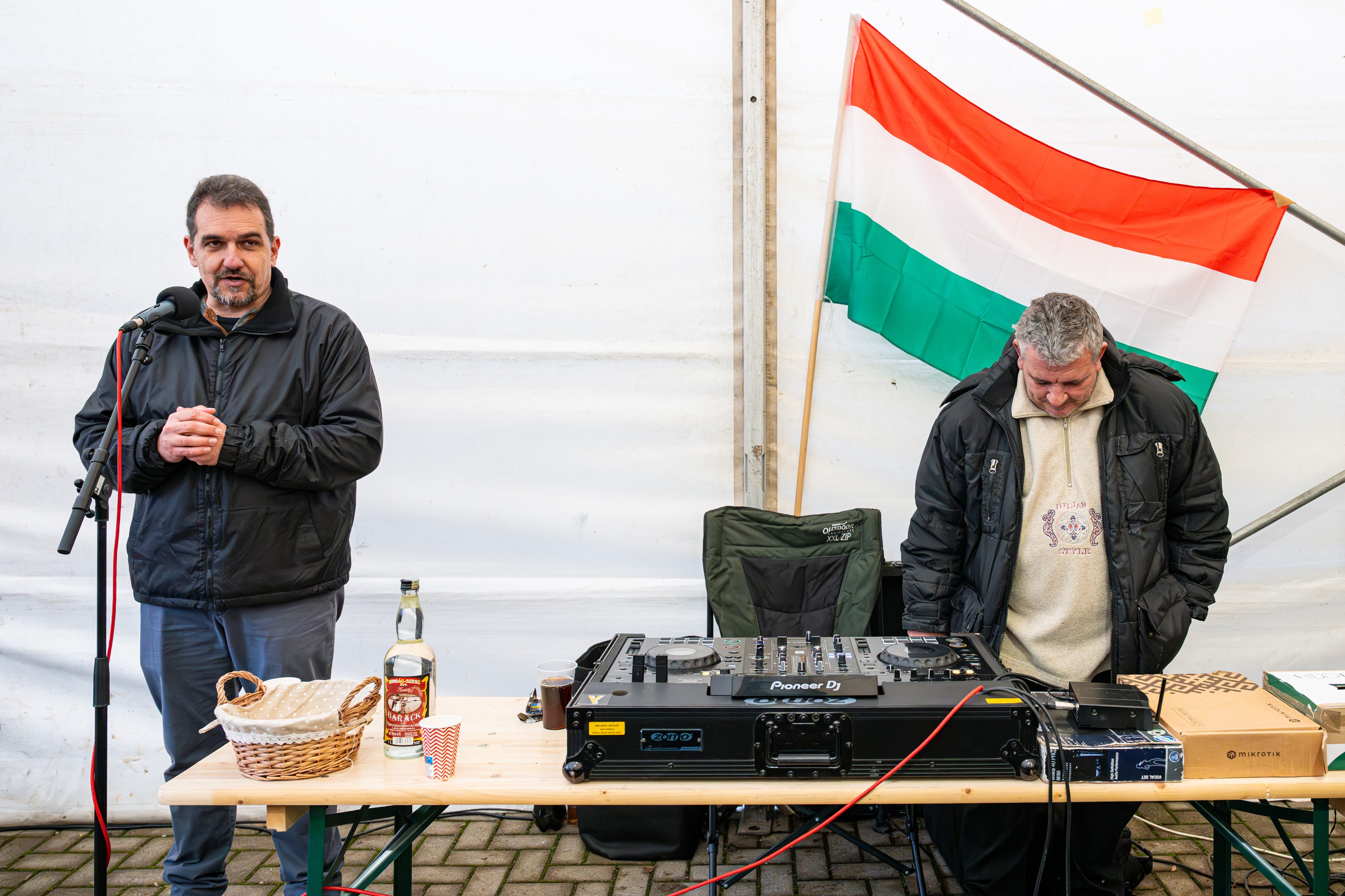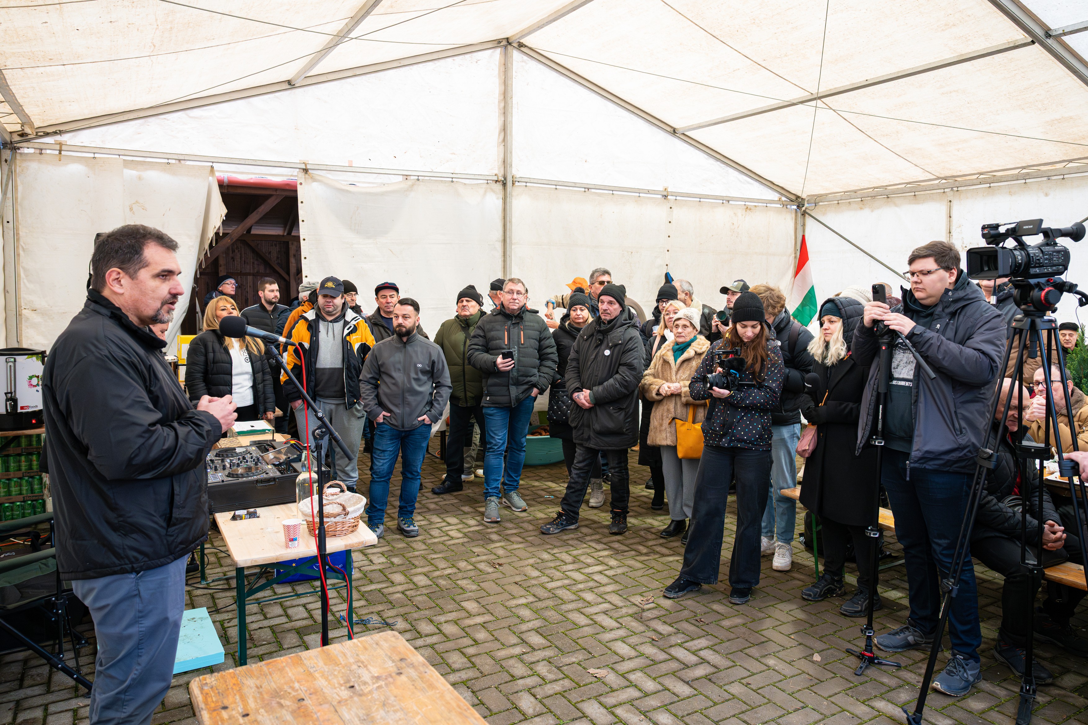 Helyben ugyan nem könnyű elnyerni az ősidők óta Fidesz-szavazók bizalmát, de van, aki már szembeszállt a Fidesszel, és bizonyítani tudott. Nyikos Gábor babóti polgármester 2024-ben vette át a falu vezetését az 1998 óta regnáló polgármestertől. Ő is disznóvágást tartott aznap, noha inkább hagyományőrzés, mintsem pártkampány céljából. Babóton egyel oldottabb hangulatot is tapasztaltunk, mint a Tisza rendezvényén, jóllehet ilyenkor az eltelt idő egyenesen arányos az elfogyasztott pálinkák számával, és érkezésünkig a babótiaknak több idejük volt felönteni a garatra.