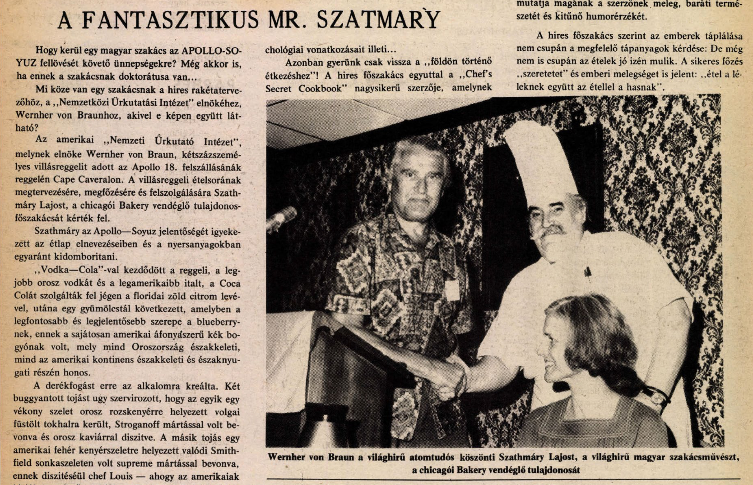 Azt az ételt is Szathmáry alkotta, amit az emberek az első holdraszálláskor ettek 1969-ben.