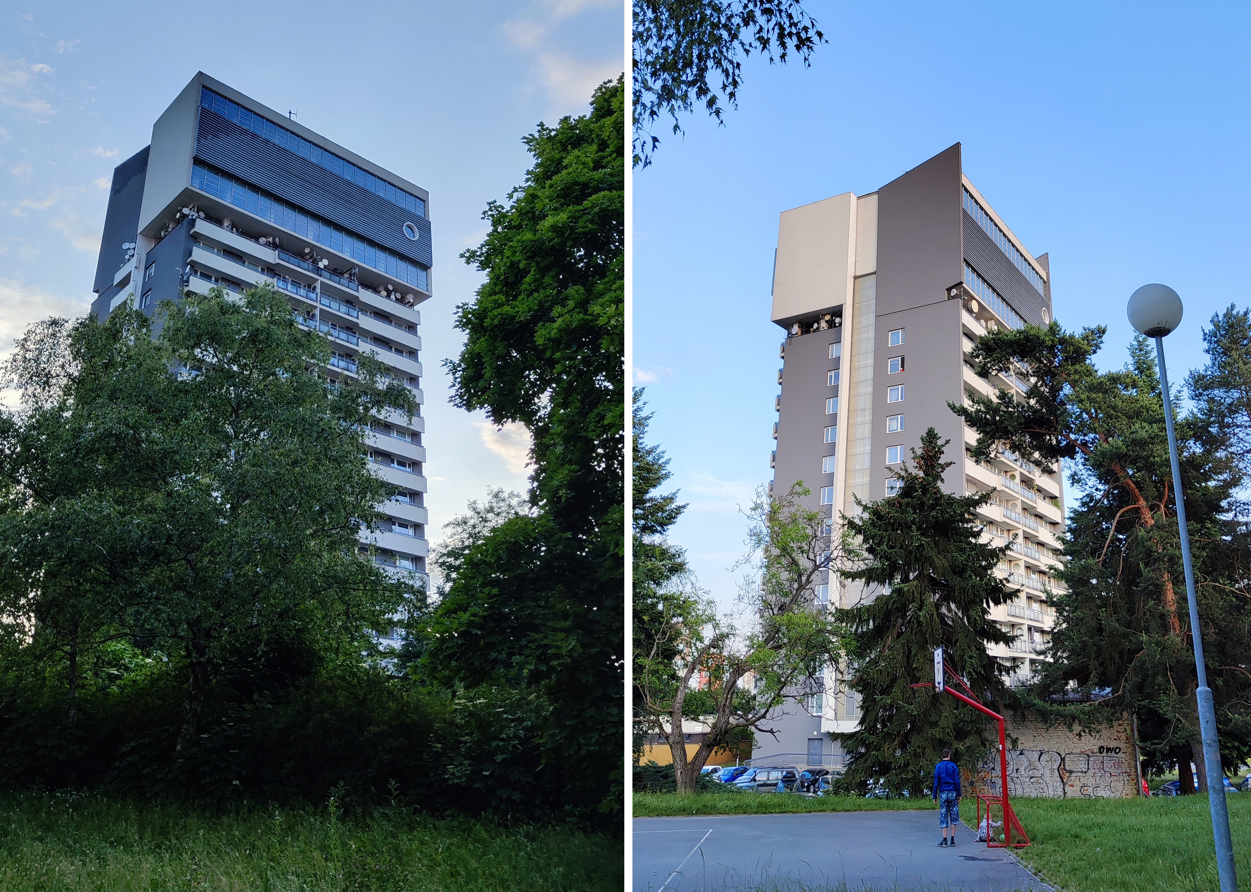 Több mint kétszáz kilométerre északra, a cseh-szlovák határ túloldalán lévő Alamócon (Olomouc) jóval nagyobb méretekben gondolkodtak: az F1 jelű lakótelep közepén álló vasbetonvázas épület technológiai megoldásait tekintve közeli rokona az újpalotainak, annál azonban valamivel alacsonyabb: a tizenhárom lakószintre illesztett, ipari épületeket idéző középfolyosóval, illetve a két 500 köbméteres tartállyal együtt is csak 62 méternyire nyúlik a járókelők fölé.