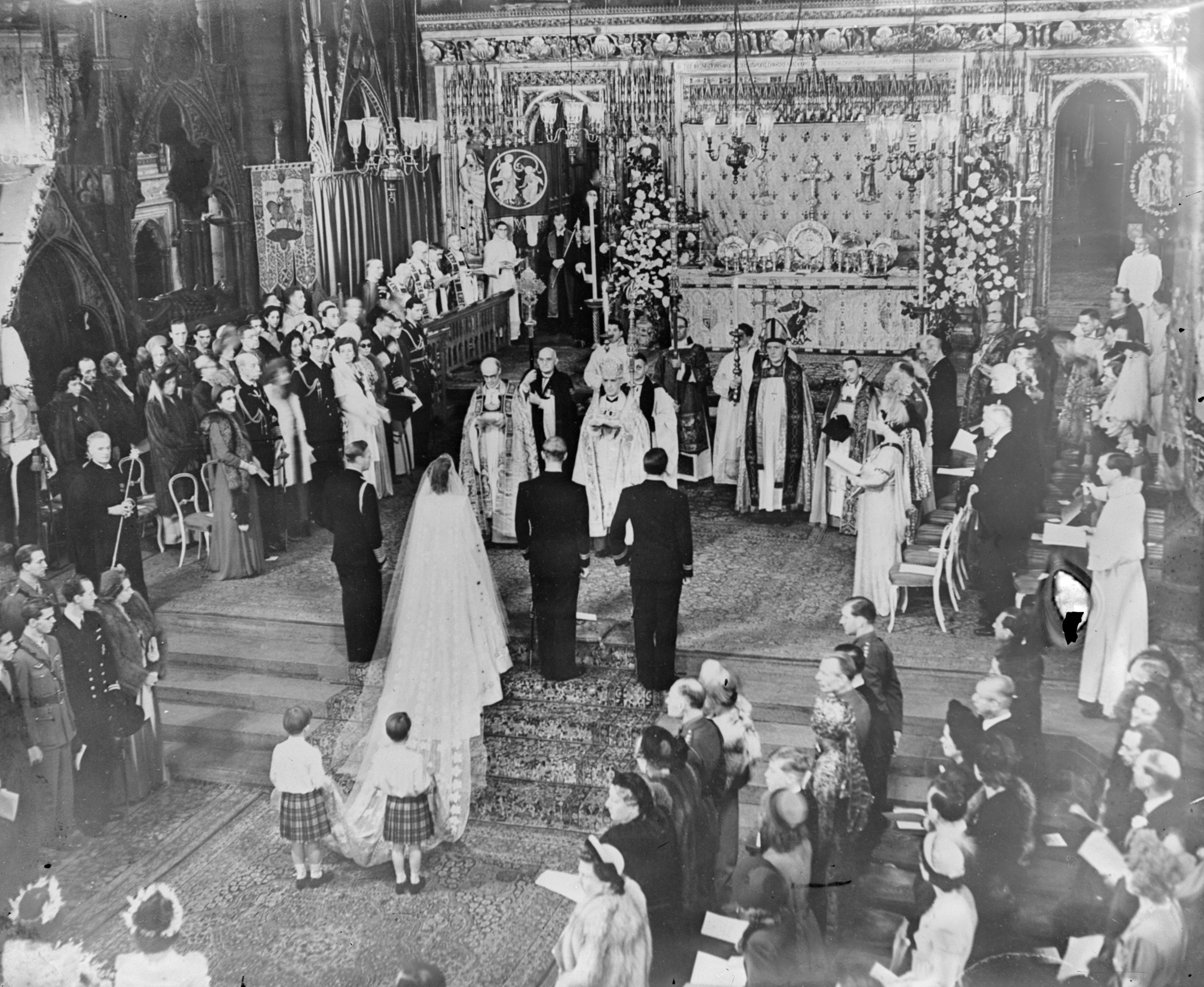 A pár 1947. november 20-án, a westminsteri apátságban fogadott egymásnak örök hűséget egy pompás ünnepség keretében. Több mint tízezer gratuláló táviratot és közel háromezer esküvői ajándékot kaptak a világ minden tájáról. Utóbbiakat a Szent Jakab-palotában állították ki, ahová kétezer ember látogatott el csak azért, hogy láthassa, mi mindent kaptak a friss házasok.