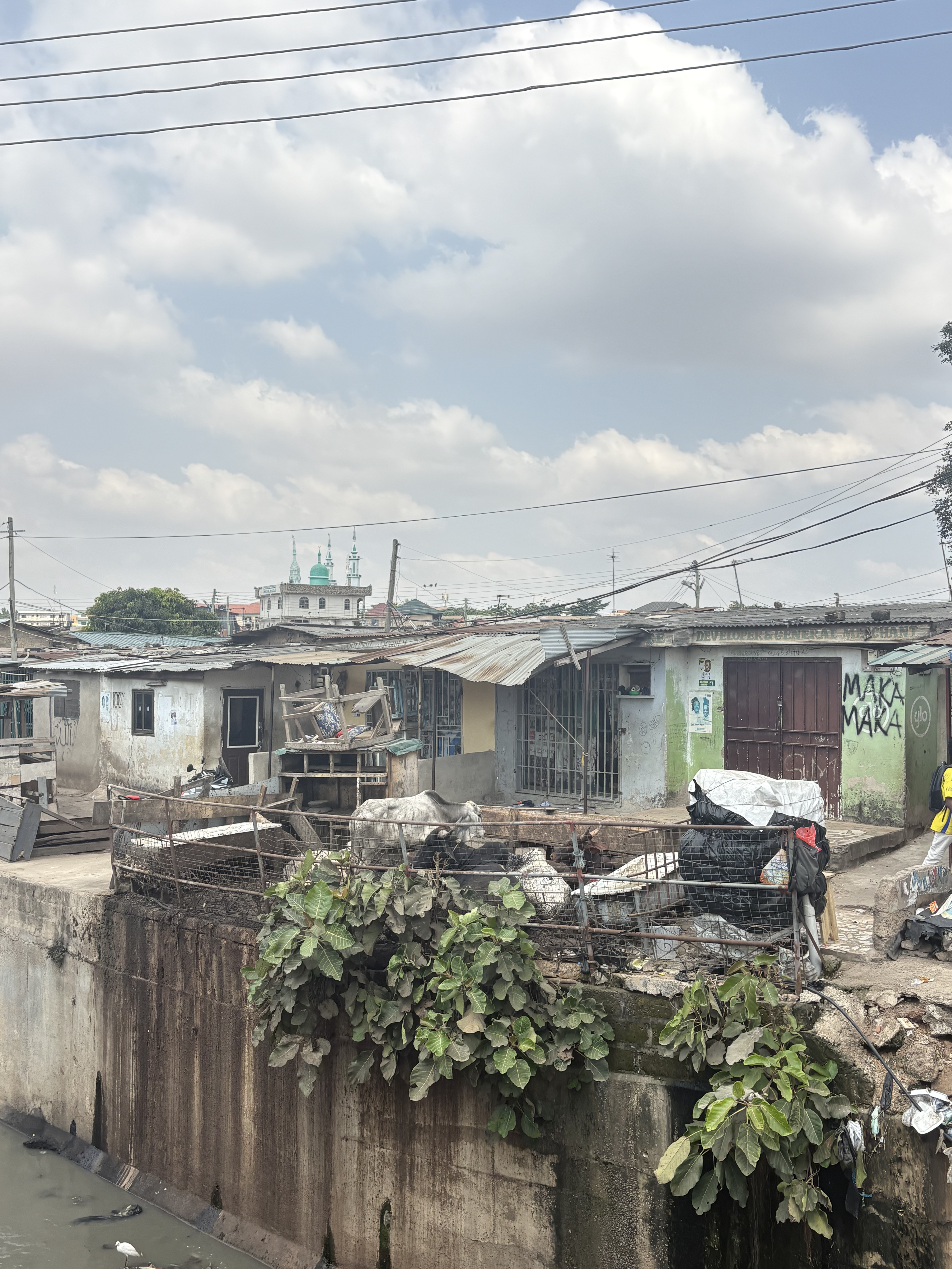 Egyikükkel a nimai nyomornegyedben sétáltunk. Kérdeztem a tisztálkodásról. Leginkább azért, mert egy kisgyereket láttam, ahogyan nem bilin ül, mint felénk a kortársai, hanem egy zacskó tart maga alá a kvázi utcán, abba céloz. Csatorna nincs, vizet gyűjtenek a tisztálkodáshoz, a gyerekek székletét egy felnőtt viszi el, amikor a szomszédságban összegyűlt annyi, hogy megéri a távot megtenni. Merthogy vécé csak nagyon messze van, az egyik fizetőshöz elsétáltam vele, mentünk vagy tíz percet, negyedórát, azt mondta, reggelente akár fél órát is várni kell a sorban, annyian használják.