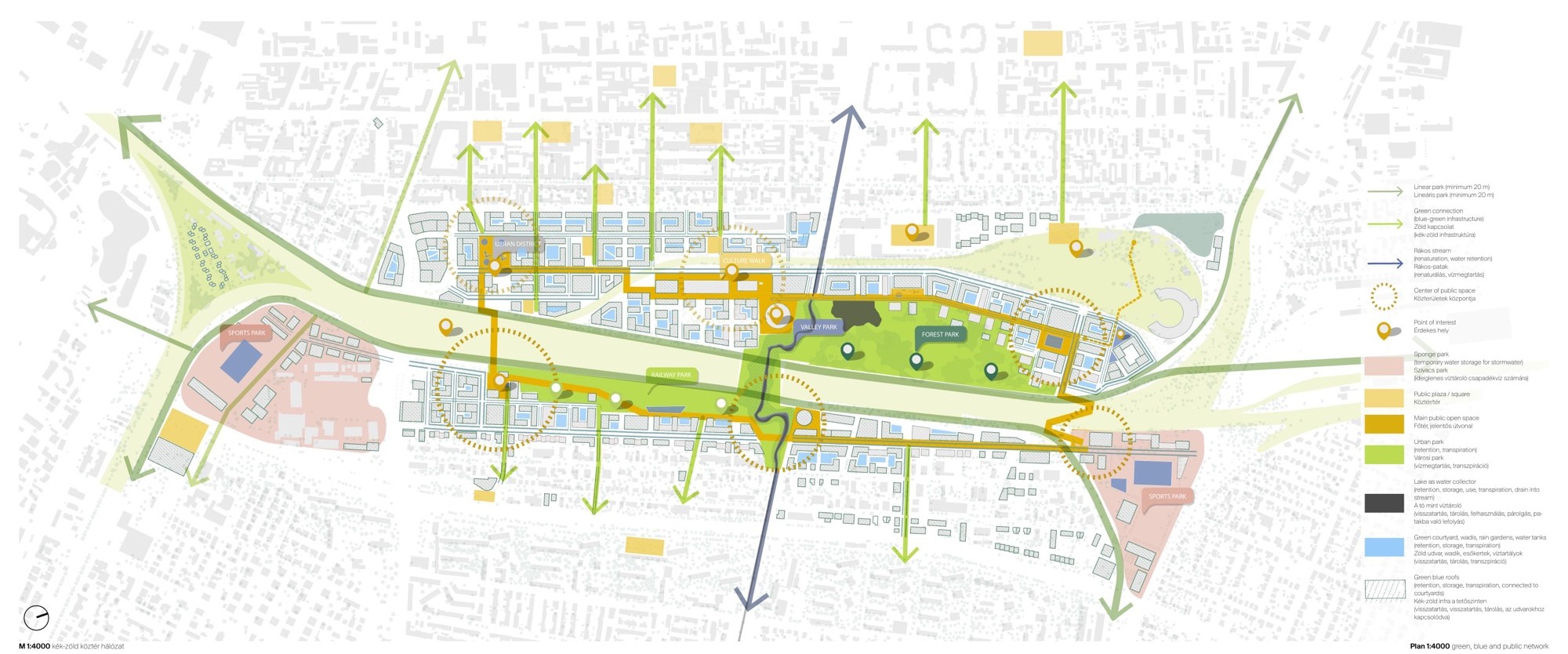 Az egyharmados arányt a Rákosrendező-projekt már szinte csak a minden tervezőtől elvárt huszonöt hektáros központi zöldfelülettel teljesítené, amit a kisebb-nagyobb parkocskák csak tovább növelnének.