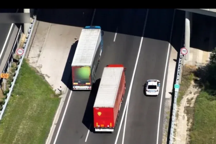 A nehézteherautók nappali előzési tilalmának megsértése mellett a követési távolság betartását is ellenőrizték a levegőből.