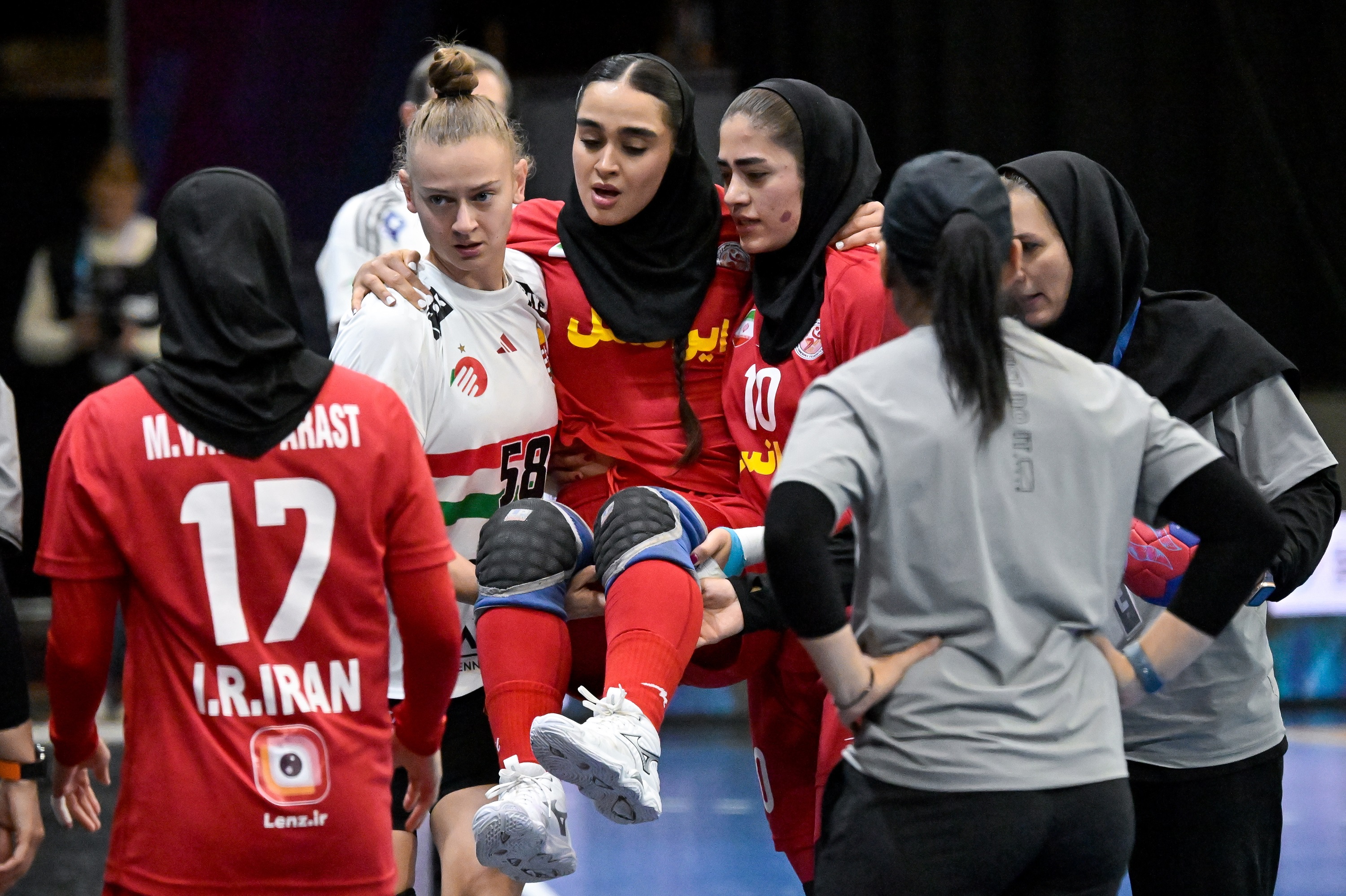 Ugyan nem volt durva a meccs, több balszerencsés baleset is érte a mieinket, Tóvizi Petrának a torkát, Klubjer Katrinnak az orrát ütötték meg az ázsiaiak. Mégsem a magyarok szenvedtek sérülést a mérkőzésen, hanem Nastaran Koudzarifarahani, aki a második percben úgy összeütközött Kuczora Csengével, hogy alig tudott lábra állni. Társai megpróbálták lekísérni, de végül a magyarok közül Bordás Réka pattant oda és az ő segítségével hagyta el a pályát a pórul járt iráni. A jelenetet ezen a linken lehet megnézni.